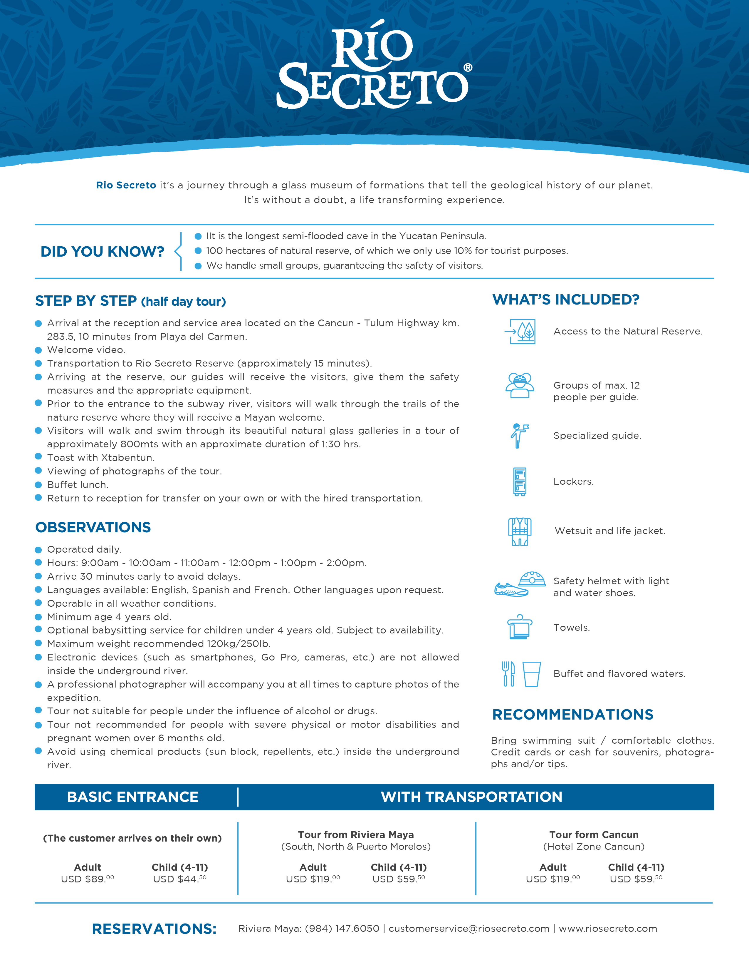 Rio Secreto is a karstic and hydrogeological system of semi-flooded caves located in the Riviera Maya, just 10 minutes from Playa del Carmen. Our mission is to transform our visitors through a unique journey into the bowels of the Earth.